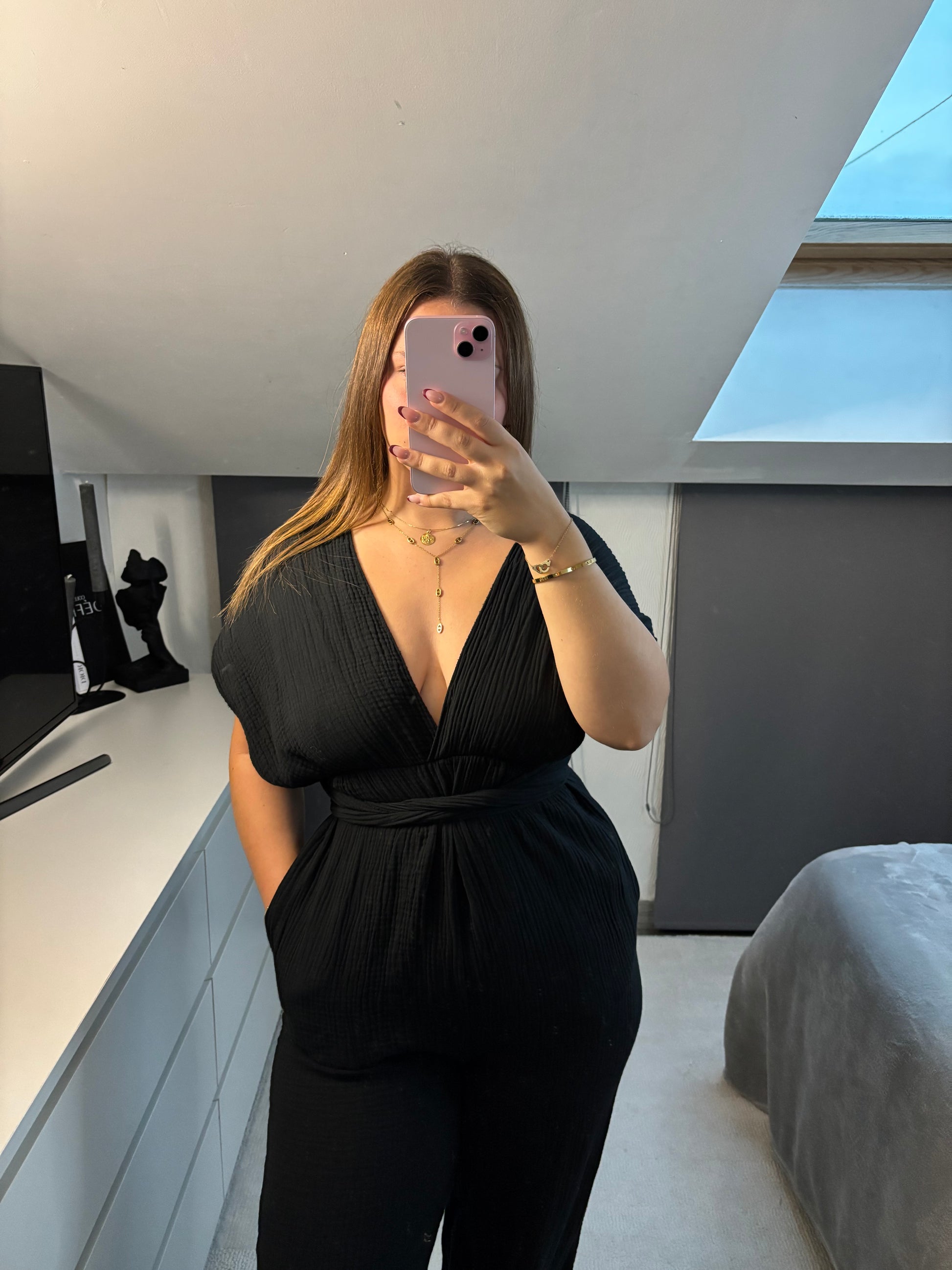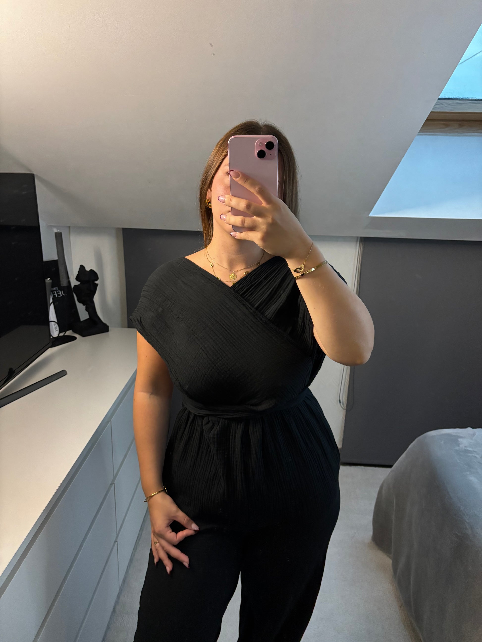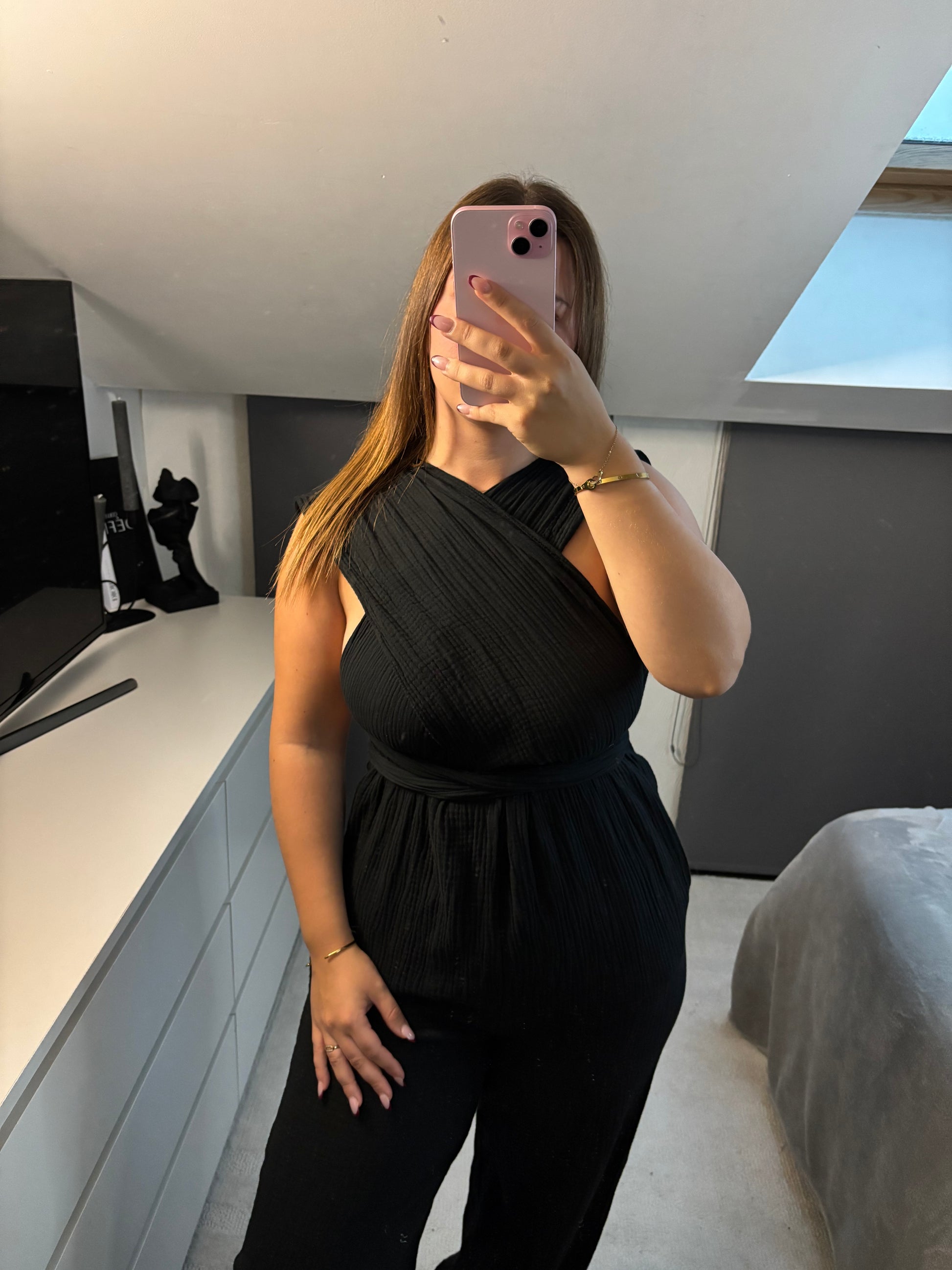 Conçue pour le style et le confort, la combinaison noire NAYA peut être portée de plusieurs manières. Profitez d'une élégance polyvalente en toute simplicité. Avec sa coupe confortable et ses détails élégants, cette combinaison est parfaite pour toutes les occasions.