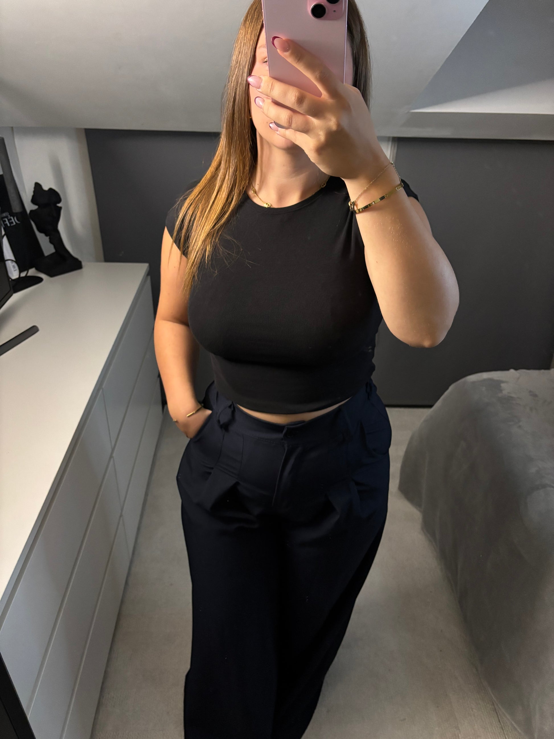 Ce pantalon large TIFANIE , vous offre un style classe et élégant. Sa coupe flatteuse convient à différentes morphologies. (Faites attention le pantalon est long entre l’entre jambe et la fin du pantalon 80 cm)
